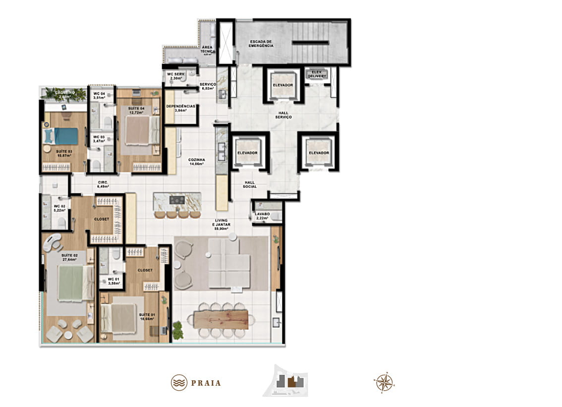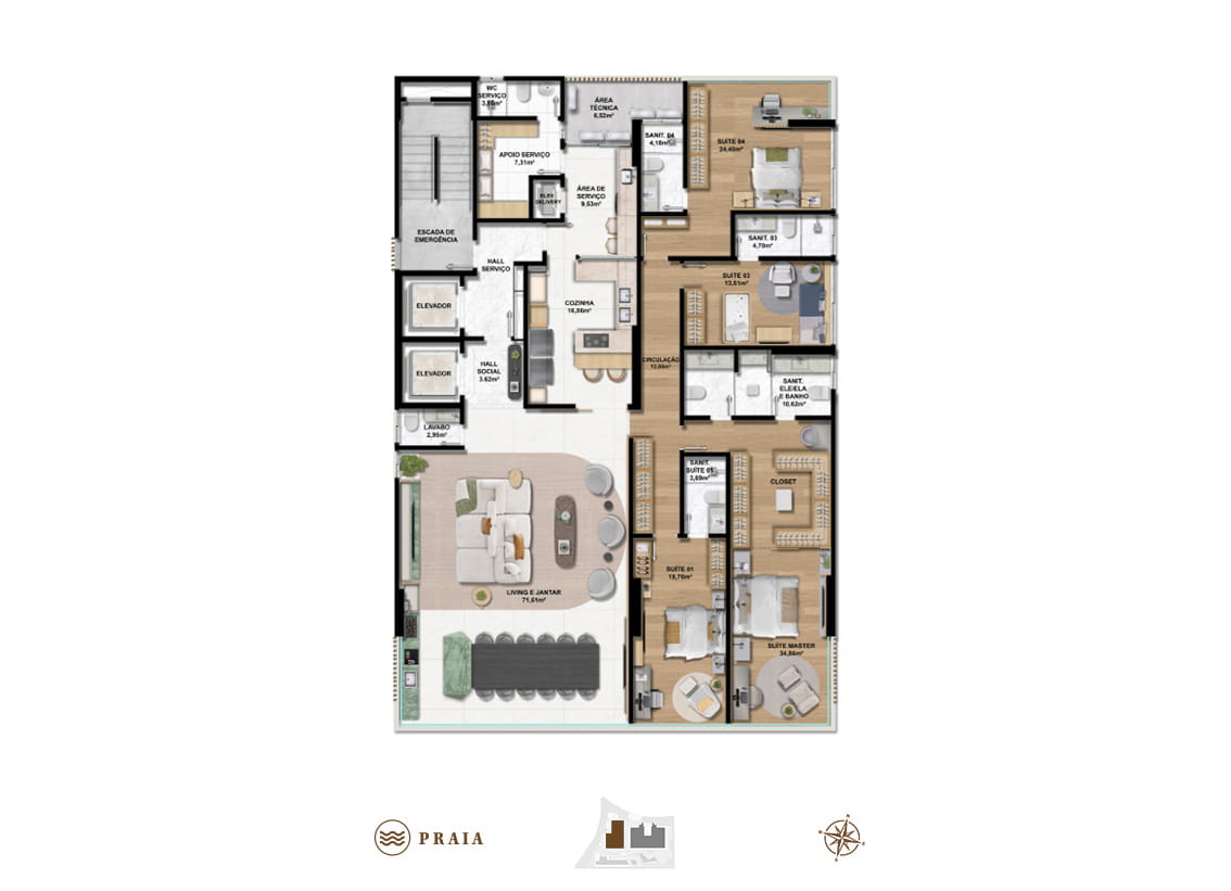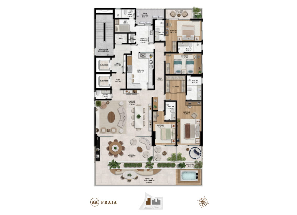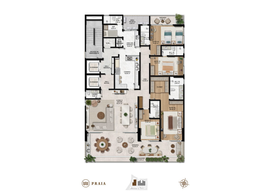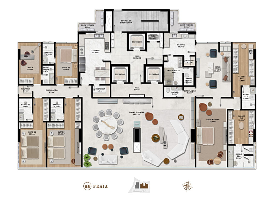 183,18 m2. PRAIA SUGESTÃO DE AMBIENTAÇÃO POR GAM ARQUITETOS.