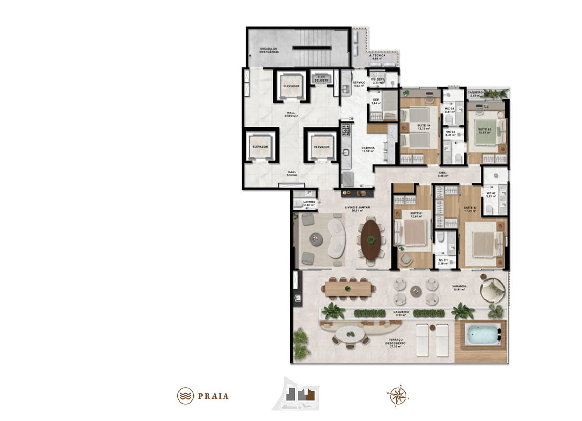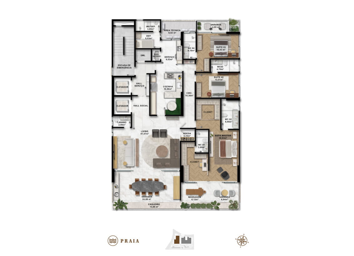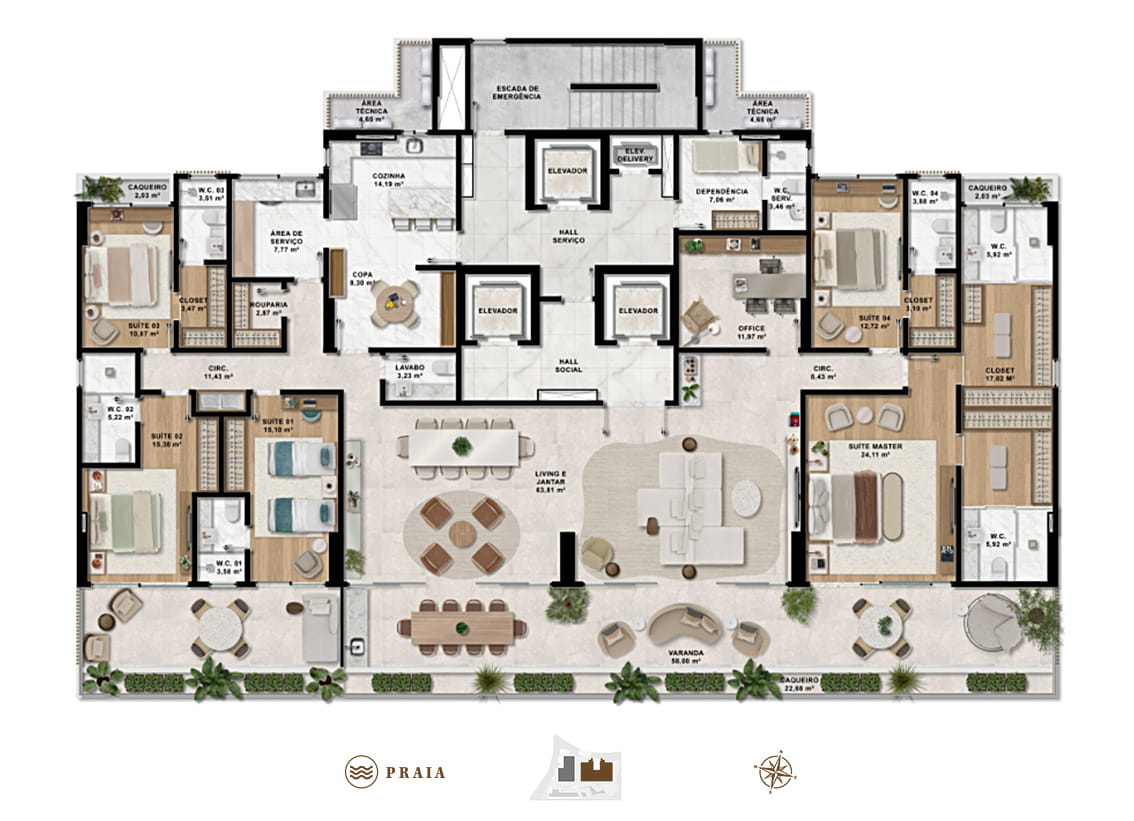 183,18 m². PRAIA SUGESTÃO DE AMBIENTAÇÃO POR 474 ARQUITETURA E DESIGN